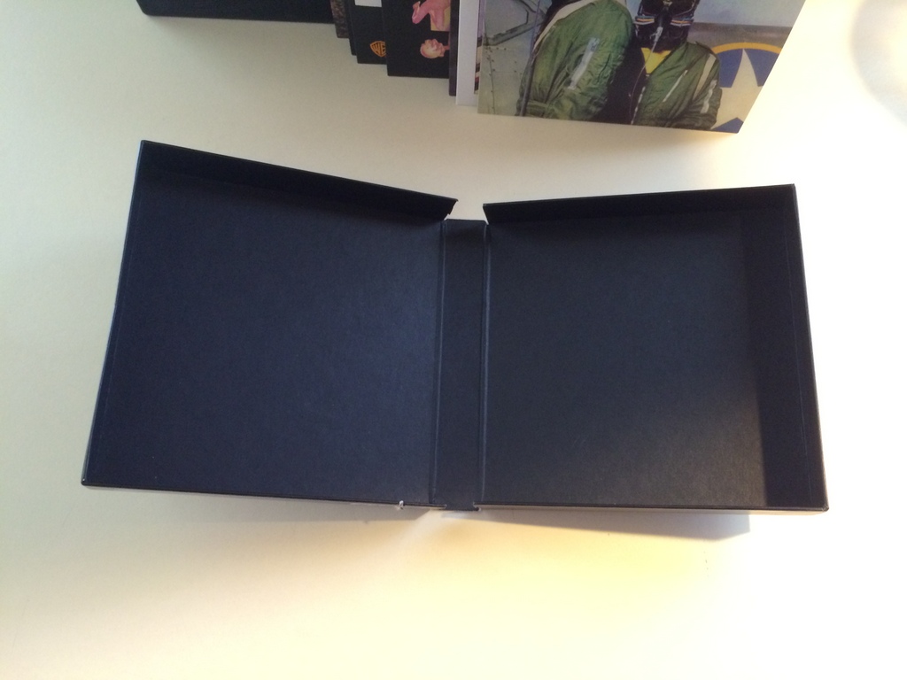 • The cardboard sleeves both have the front and back cover art for the eight albums.
