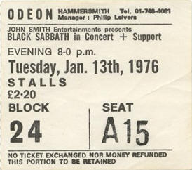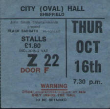 | Nov 13 1975 | Cardiff | Capitol Theater | Postponed until 11/22 due after Ozzy injures himself in a motorcycle accident | |